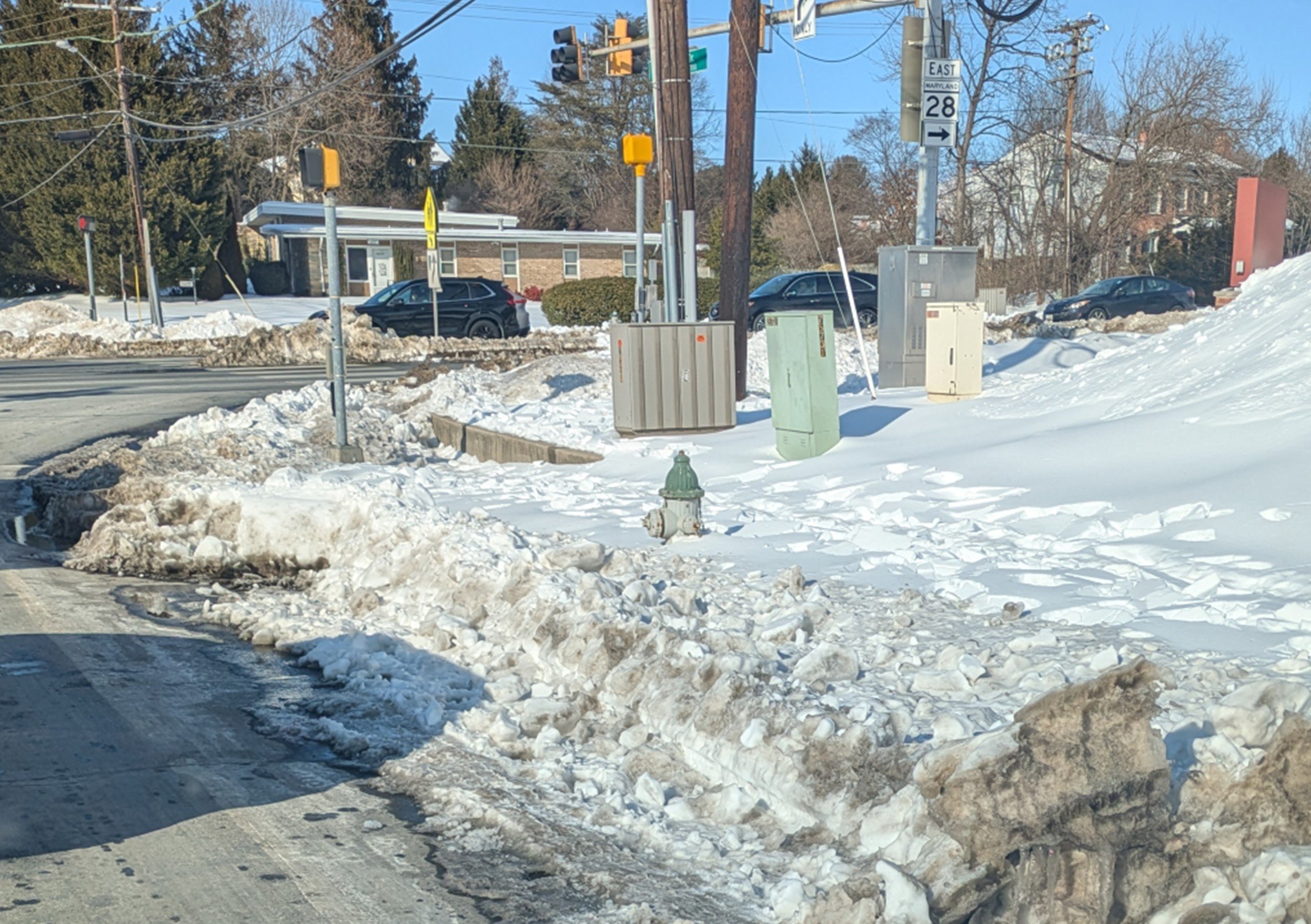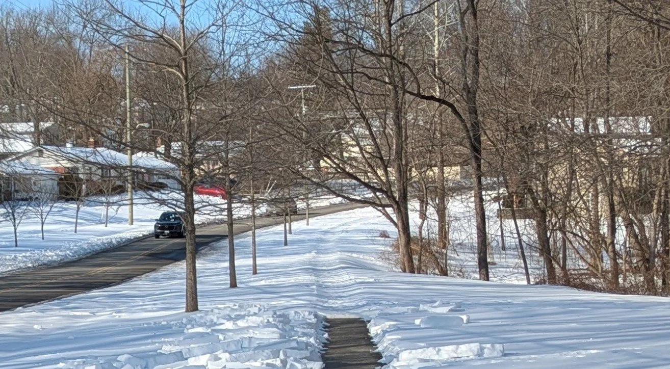 Sidewalk clearance remains the most consistent concern area wide. While an estimated 80–90% of sidewalks in front of homes were shoveled in areas surveyed, publicly maintained sidewalks were cleared in only about half. Major walking routes to schools remain problematic, or even impassable, including Bauer Drive leading to Wood Middle School, Russett Road approaching Rock Creek Valley Elementary School, and First Street in the blocks immediately before Maryvale Elementary School. These county-maintained segments were still heavily snow-covered as of mid-afternoon on Saturday, January 31st.